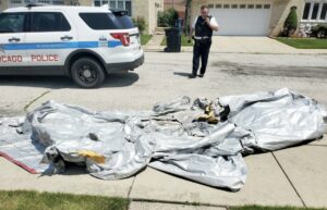 Medios locales informaron que el objeto correspondía al tobogán de evacuación de emergencia de un avión que aterrizó en el aeropuerto internacional O’Hare de la ciudad de Chicago, Estados Unidos.